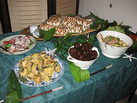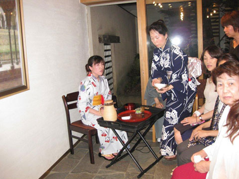「茶の湯」をテーマにボードメンバー全員で会場設営や食事、飲み物を準備。全員着物やゆかたに着替えて会員の皆さんをお出迎えさせていただきました。