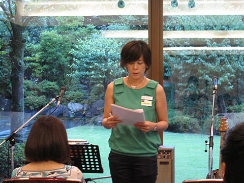 また、会計担当の磯田桜さんからは2010年度の会計報告があり、3月11日の東日本大震災で被災したIIDA会員の小柴裕さんと長塩小夜子さんにお見舞金をお送りした旨が報告されました。そしてそのお二人から、今回の総会とチャリティーイベントに向けて送られたメッセージの抜粋がパーストプレジデントの細井絵理子によって代読されました。
