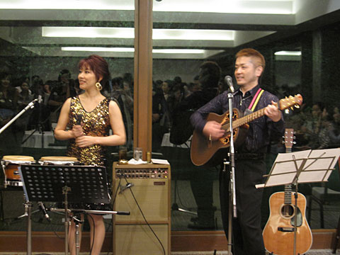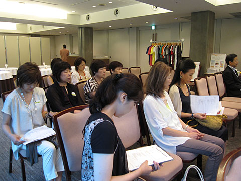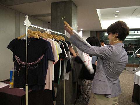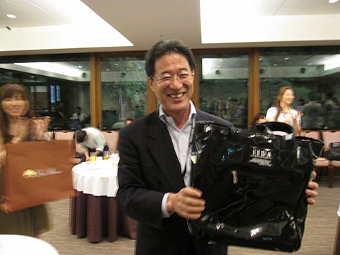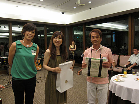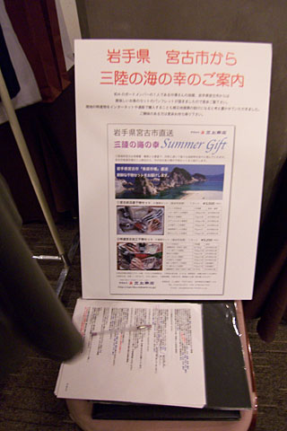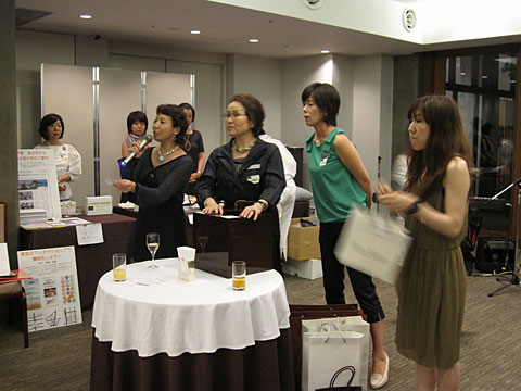 また同会場には被害が大きかった岩手、宮城、福島の東京にあるアンテナショップのパンフレットと岩手県宮古市から干物のサマーギフトのチラシが置かれ、被災地への支援の呼びかけもされました。その後、ゴスペル・ユニットのAya & Kenによるライブと出席者皆での合唱、IIDAオリジナルグッズの抽選会などが行われ、大変盛況なイベントとなりました。最後にヴァイスプレジデントの窪田さんから挨拶があり、震災で犠牲となった方々への黙祷が捧げられました。