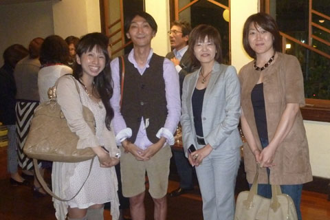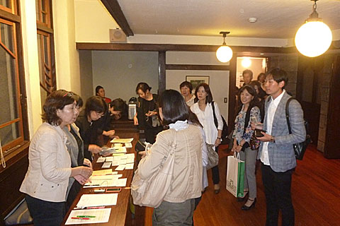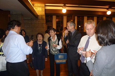 講演後には交流会が開かれ、ワインを片手に参加者の方々の親睦が深められる中、講師のアレックス・カー氏の元へは、順番待ちの列ができる程、多くの方が訪れ、様々な意見交換がなされていました。