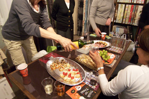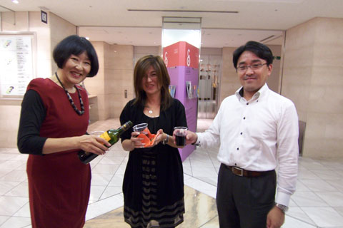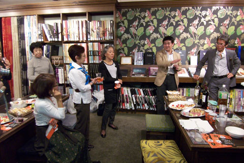 セミナーの後はテシードショールームにおいて江面社長より中国の壁紙事情やデザイナーの活躍の仕方など大変面白いお話があり、メンバーの用意した美味しいおつまみとワインで予定の時間をオーバーして盛況のうちにお開きになりました。