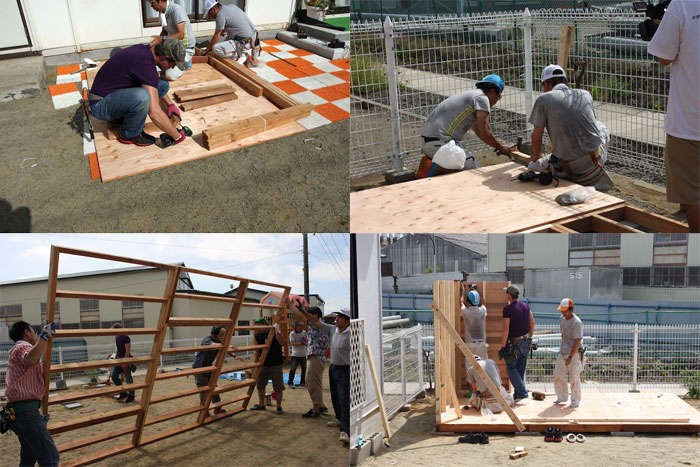 仙台から小柴さんがボートハウス製作のため集めて下さった 仙台‘S SEVENは 事前に集まって図面の検討をして下さったり必要な材料を買いに行って下さったり 午後3時頃までに目処をつけるために相当下準備をして下さったそうです。