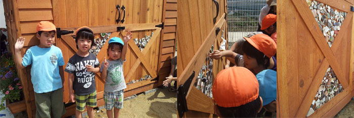 園長先生から物置を希望されてボートハウスを贈りましたが、園長先生や保母さんからしばらくは子供達の保育室の一つとして使いたいと言われました。