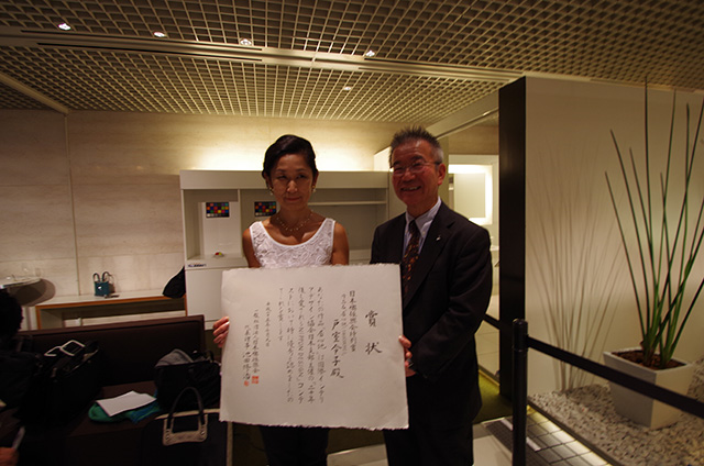 表彰状授与: 2011・2012年度 日本支部プレジデント角田嘉代子氏、 Presenter - Cheryl Durst氏