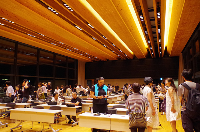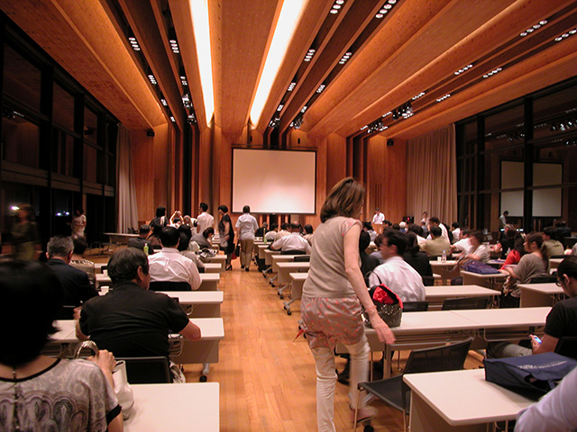 数多くの参加者が、会館の最上階の東京を一望する素晴らしい会場にお集り頂き、今回のIIDAの記念行事における一貫したテーマであった、日本の伝統・芸術・技術・デザインを未来に繋げ、海外にも紹介する、に相応しいムーサス氏の京都のみならず海外でのお仕事の数々を見せて頂きました。