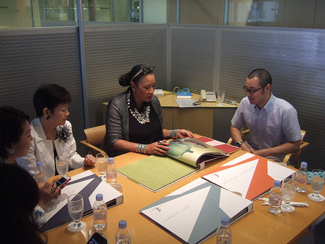 7月12日(金)はNelsonとGenslerのアポを午前中にこなし 午後には野村工藝さんに丹羽さんがお連れ下さいました。メンバーの児島さんがご案内下さり Cherylさんはとても印象深かったと仰っていました。野村工藝の後は木材会館へ そしてGeoffrey Moussas氏のセミナーでした。セミナー前に 総会があり ご挨拶していただきましたが時間がなく 短いご挨拶だけで残念でした。 今回は30周年記念のパーティーでメンバーにお話しして頂く予定でおりましたのに 段取りが悪く それができなくなり 結局メンバーに対してのCherylさんからのスピーチがなくて終わってしまったのがとても心残りです。