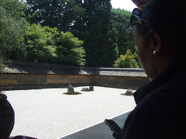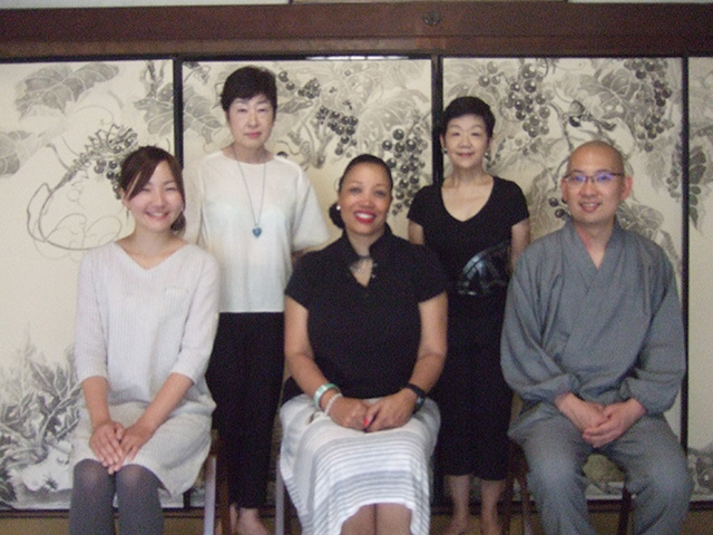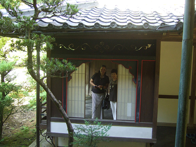 退蔵院の後は 「くろちく」でのランチで 黒竹社長にお会いしてお話を伺い「日本の素晴らしい伝統文化を後世に残したい」という目標は スケールは違うけれど 私達と同じだな・・・・と 勇気を頂き、見学の時間に遅れまいと 大急ぎで桂離宮に向かいました。 この日も38度という猛暑の中 ふうふう言いながら 日本の誇りとする名庭を歩き 建築を見て回りました。 さすがにCherylさんも お疲れのご様子でした!帰りの新幹線の中では 少しはお休み頂けたのではないかと思います。