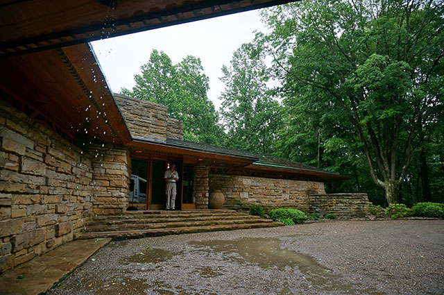 施主は先に建てられた落水荘を見て、惚れ込みライトに設計を依頼したそうです。通年使用で、長く住み続ける間には、多少の改築などもあったようですが、ライトの設計を損なうことなく、あたかもそうであったかのように、私には見えました。