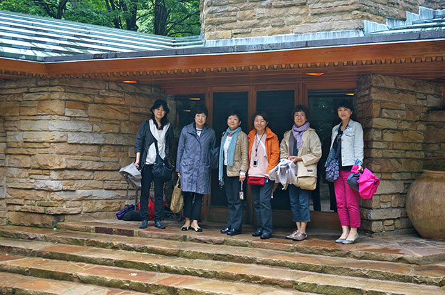 私達はピッツバークを訪れる前、シカゴ オークパークでライトの建築を沢山見てまいりましたが、それらとは違って、ずっとやさしく、温かく繊細にして力強い印象を受けました。