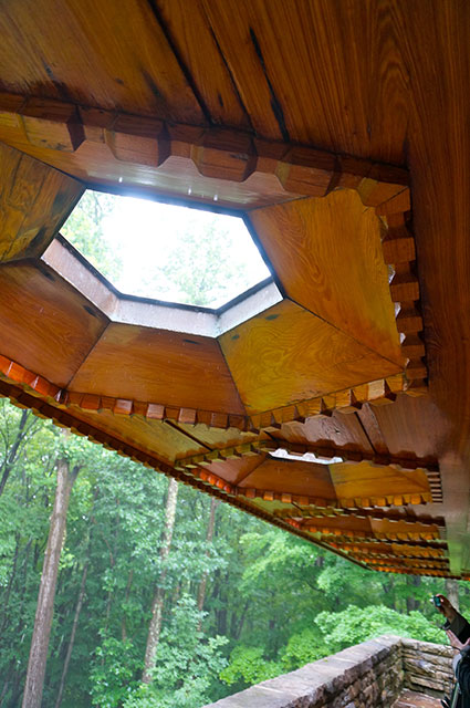 私は、ずっと以前に読んだライトの本の一節に、ライトが幼い時に母親が言った言葉を想い出していました。遠い親類にあずけられ、つらい、農作業の毎日で、逃げ帰ったライトに、「大地をご覧なさい、自然を愛しなさい。」とケンタックノブに身をおき、住居としてのユーソニアンハウスの完結形とライトが母親から最初に受けた教育、有機的なもの、大自然に学ぶことの大切さ、これらの、集大成のように感じたのでした。