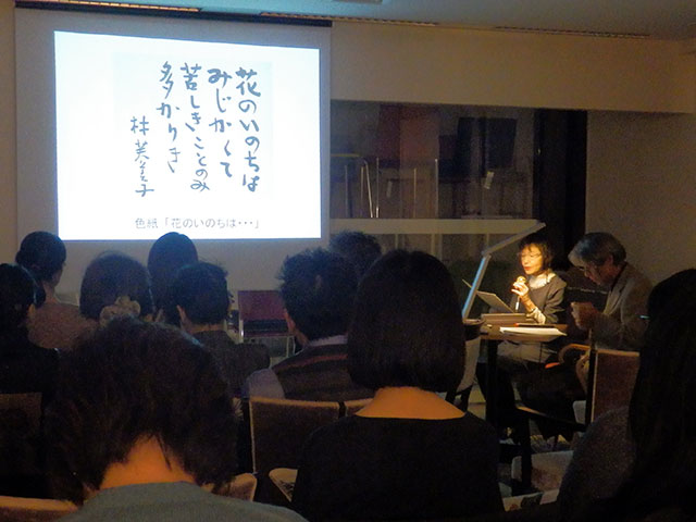 建築家の根岸俊雄氏のレクチャーに加え、その道のプロとしてご活躍の奥様の純子氏の朗読は味わいを深くし、「日本語の美しさ」に改めて聞き惚れた方も多かったようです。それぞれの作家たちの住宅への思い入れや人生模様と生きざまが、住宅の個性として現れている・・・そんな面白さに気づかされもしました。