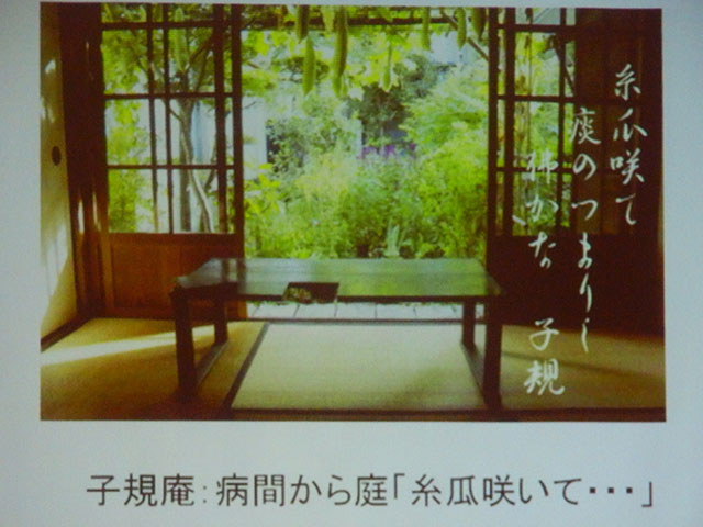 最後の正岡子規の「子規庵」はひっそりと鶯谷の一角にあり、見落とすほどに地味な存在とのこと。彼は結核と闘い、病床にありながらもほとばしるようなエネルギーで、近代文学の巨星として生きた人です。彼にとって家の有り様は意中にほとんどなく、文学と仲間への熱き思いで人生を駆け抜けたものと感じられました。