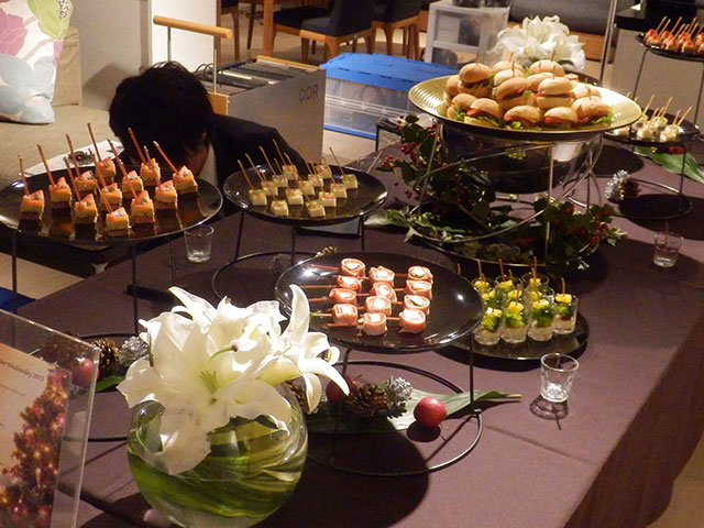 今までのセミナーとは趣向の異なるアカデミックな要素をとり入れた内容にご興味を寄せられたかたが多く、定員オーバーでのお申込みとなりました。さらに、終了後のクリスマスパーティーはスモールサイズのものでしたが、センスと美味しさに定評のデリバリーフーズのご協力で、皆さん堪能! 参加者の皆様からはご満悦の声を聞くことが出来ました。また、時節柄、落ち着かない日々を過ごされているかたも多く、楽しいセミナー&パーティーでリフレッシュされた・・・との声に主催側も嬉しいかぎりでした。