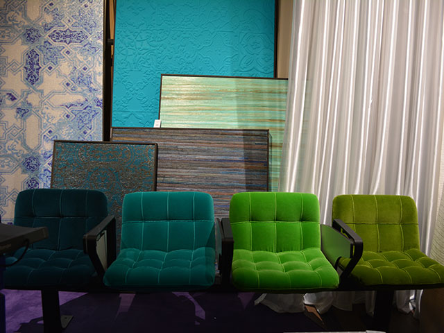 セミナー後にはハイムテキスタイルに自社ブランド「ライトキューブ」を出展された テシードの江面社長のお話もあり、テシード社の歴史/ライトキューブとの協力体制で「日本の壁紙ブランドとしてトレンドを世界に発信する」意気込み/新開発のメラミン化粧版紹介/WAA プロジェクトに対する期待も伺いました。