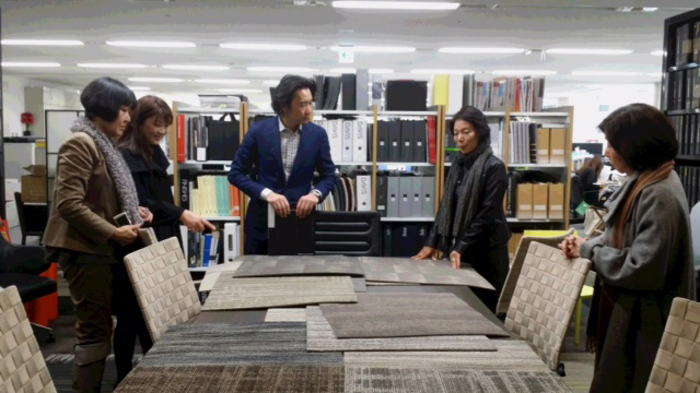 晴海アイランドトリトンスクエアのショールームにて、田口さま、堀池さま、スタッフの皆さまに温かく迎えていただきました。 最初にshaw社の「COLORSENSE」のビデオを拝見しました。