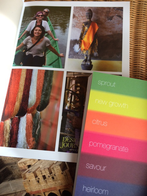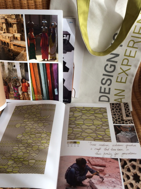 デザイナーさんが(写真の中に写っています)テキスタイルデザインを考えるために旅に出て出会った国、人、文化、色、惹かれた風景にインスピレーションを受けてデザインが考えられ、カーペットは生まれたのだそうです。冊子やカタログに その様子を見る事ができます。時間を費やし、大変深いコンセプトから作られている事に驚きました。