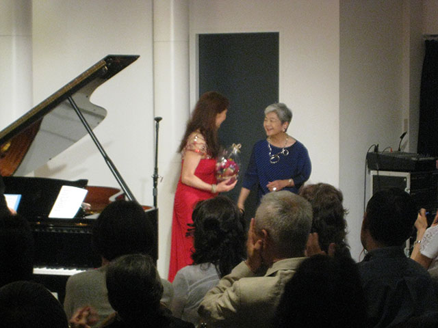 当日のライブは、JAZZのスタンダードナンバーからポップス、ロック、ジュリーに至るまで、幅広いジャンルで会場が一体となる盛り上がりとなりました。心に響く素晴らしい歌声とスタンウェイのピアノ。小気味よいリズムと絶妙なトーク。日仏文化センター汐留ホールの会場からパワフルで温かい空気が東北に届いたに違いないと感じる、熱気のあるライブでした。