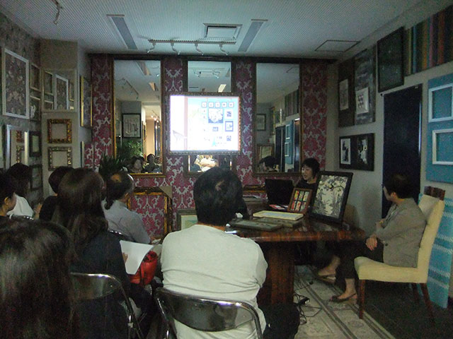 会員Affiliate Memberの岩本さんのモールディングの会社、 Hanaelさんのショールームをお借りして、 会員の丹羽さんが「アートの飾り方」についてレクチャーして下さいました。