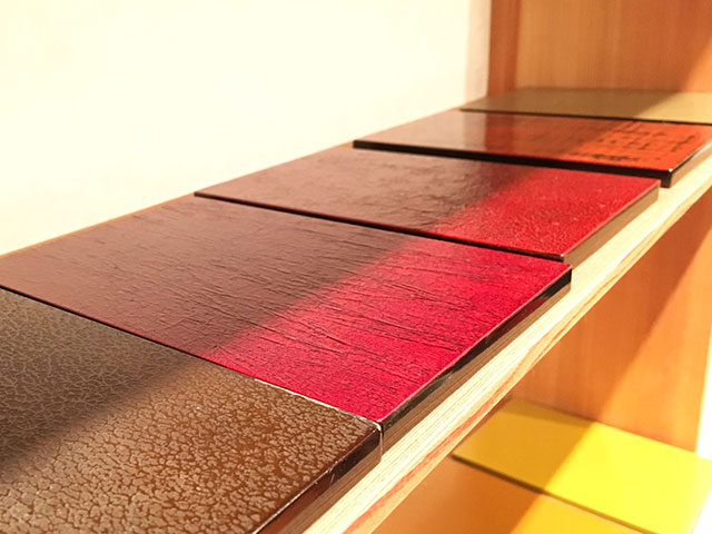 漆というと現代でもすぐ思い浮かべられるものといえば「漆器」だと思いますが、これからは「五感に刺さるインテリアの建材」として現代人の目に触れる機会をもっと増やすべきと思ってしまいたくなる程に、自然の醸し出す素材感の力強さを知ることが木曽アルテックの製品から知ることが出来ました。