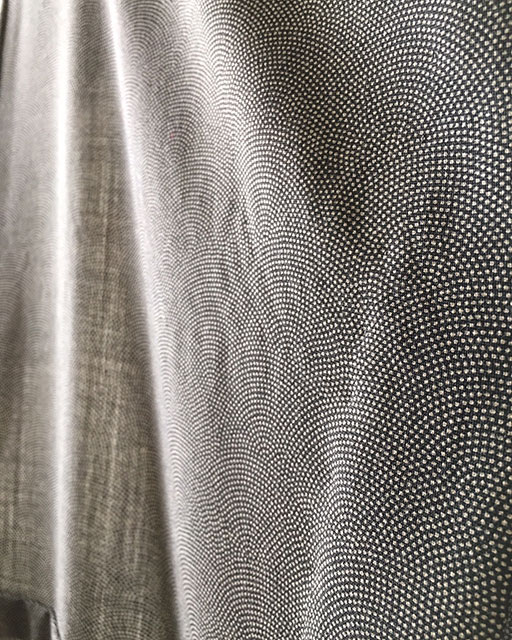 先生のお母様の着物のはぎれをご持参下さり鮫小紋の細かい点を並べた小紋柄で手業のぬくもりが伝わってくるものを感じました。