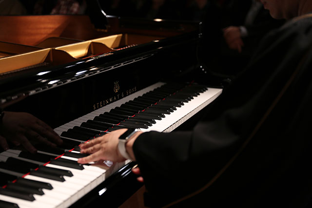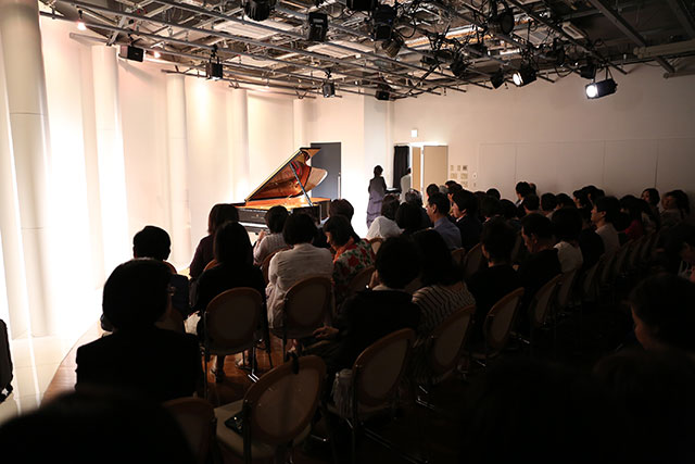 コンサートはモーツァルトのピアノソナタK. 330の全楽章の通しから淡々と始まりました。会場の皆様はその一曲目の選曲、そして妹尾さんの演奏に、考え感じる所がそれぞれあったことと思います。その後も、会場のホールが日仏文化協会ということでラヴェルやドビュッシーのフランスもの、SMAPの「世界に一つだけの花」、「アメイジング・グレイス」、チック・コリアの「スペイン」、最後は圧巻の「メフィスト・ワルツ」など観客との対話を交えながら他にも様々な曲と素晴らしいジャズアレンジも含め、終始耳も心も楽しませて下さいました。