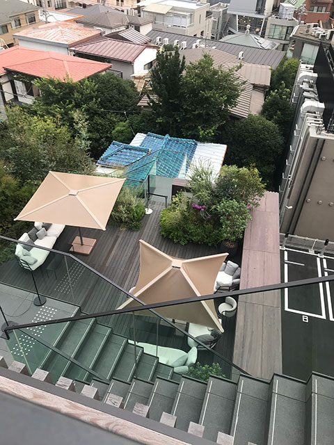 建物見学は、大小の箱が重なり合う建物に外光が豊かに差し込み、内外をつなぐ素材と空間のつながりを感じることが出来ます。各階層の屋上に当たるテラスと内側にふんだんに配された植栽が自然の丘を散策するように施設全体を楽しませせてくれます。