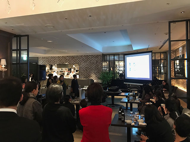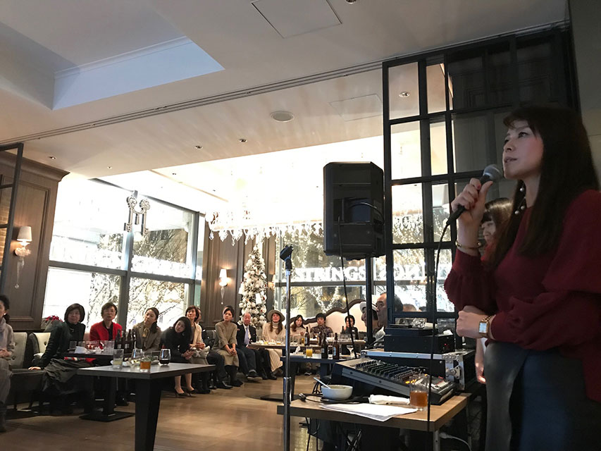 師走のご多忙な時期ながら、本年も長年の会員からインテリアを学ぶ若い学生様まで70名以上の方にご参加いただきました。心より感謝申し上げます。DUMBOさんのエレガントなインテリアの中、参加者同士の交流が弾む、華やかなひと時となりました。