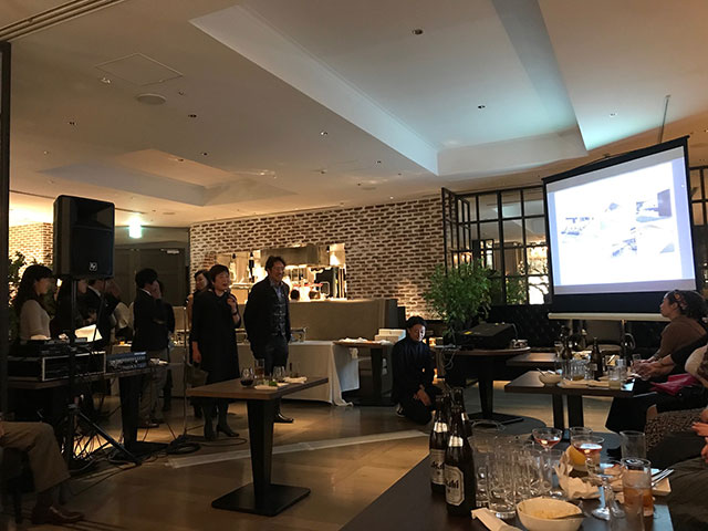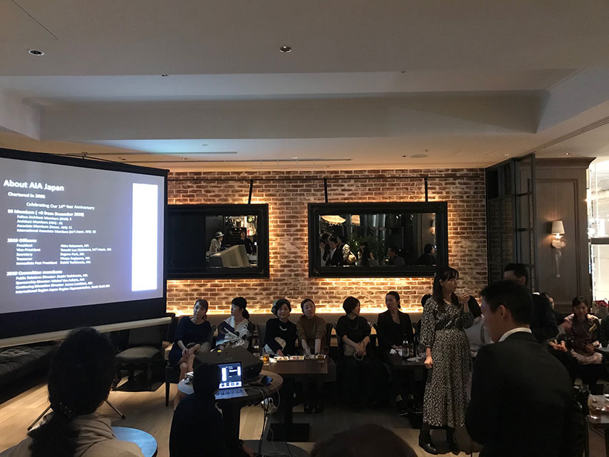 また、パーティー後半では事前に会員の中から希望者を募り、自身の近年のプロジェクトについてや、企業会員からは会社概要や製品などを発表する時間を設けました。発表者は12組と予想より多く伝える場が求められていたこと、また発表を大変熱心に聞く皆様の姿が印象的でした。会員一人一人の活動をお知らせしたり共有できる機会はそう多くない為、有意義な時間となりました。