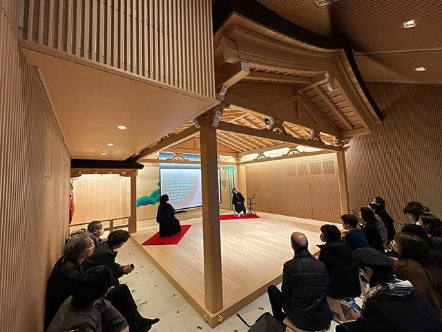 2023年12月15日に南青山に昨年5月にオープンした複合施設「IDÉALビル」の見学会が実施されました。今回はビルのオーナーでもあるIDÉAL TOKYO代表の分林実芳子さんのご好意で、通常は一般非公開の能舞台も見学させていただきました。