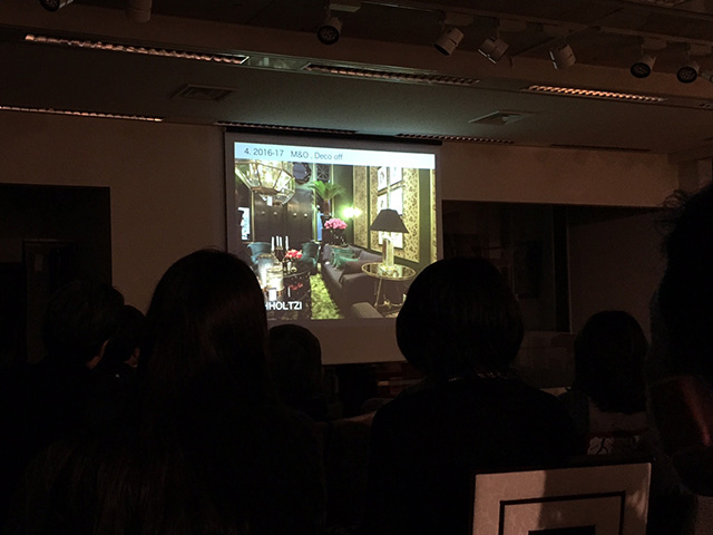 本年は、昨年フランスであった一連のテロの不安が拭いきれていない中での開催ということで、渡仏を見合わせる企業やデザイナーも多く、例年に増して貴重な聴講の機会となりました。日本でも展開をしている「CASAMANCE」「Christian Fischbacher」「ELITIS」「Pierre Frey」「Osborn & Little」他各社のブースの様子や新作商品からトレンドを解説頂きました。また、今年オープンしたばかりの「Hotel Bachaumont」や、改装で改めて魅力的になった「Hotel Plaza Athenee」など注目ホテルのインテリアまでご紹介頂きました。