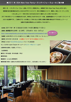 2011年 IIDA New Year Party 〜ランチ*フォーラム〜のご案内(2010.12.7)