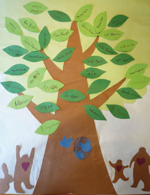 下記のHappy Tree は、7 月5 日( 木) 日仏会館汐留ホールにて行われた IIDA Japan Chapter 主催のチャリティイベントの際、寄付して頂いたHappy Tree です。1枚3,000 円以上で、お好きな色のLeaf を買って頂き、お名前を書いて貼って頂いたものです。英文有り、漢字有りですが、暖かさが伝わってくると思われませんか?