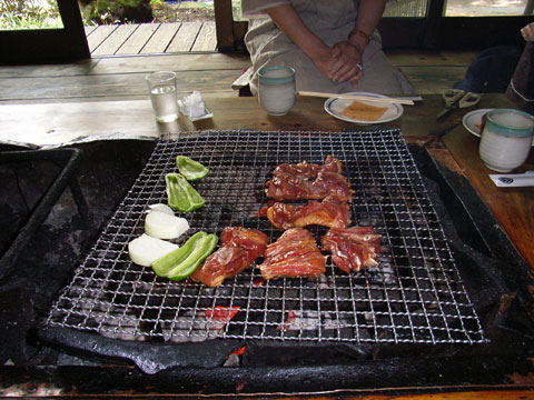梅雨に入る直前、2008年6月初旬に、九州の神秘の大地、熊本の阿蘇に降り立ちました。雄大な自然に恵まれたこの地には、地の底からわき上がるようなパワーがあり、雄々しい神々に見守られているかのような不思議な心地よさ、安心感がありました。特に生まれて初めて目にした広大なカルデラの大地にはただただ驚くばかり。車を運転しながら、思わず絶叫。感嘆の声が自然と口をつく、そんなドライブコースを巡って、まずは阿蘇の自然を満喫。旅をする時、宿までの道すがらをいかに楽しめるかが私には重要なのですが、運転しながらこんなに気持ちが良かったのははじめての経験かもしれません。そしてまずは地のもの、名物「地鶏の炭火焼」をいただくことに。