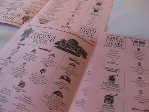 前衛フランス人シェフ、ピエール・ガニュールがプロデュースするレストラン&パーラー。バーカウンター、ソファ、テーブル、メニュー、お菓子を入れる棚、照明、トイレ…どこも見ても一貫したデザイン・コンセプトを感じることができるモダン デカダンスな空間。ロンドンでいちばんユニークな場所として定着してきた感があるパーラー。