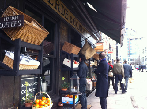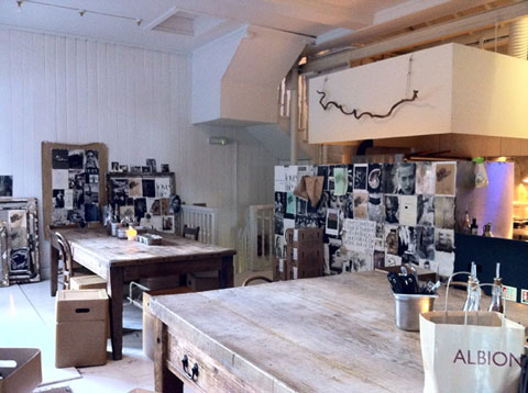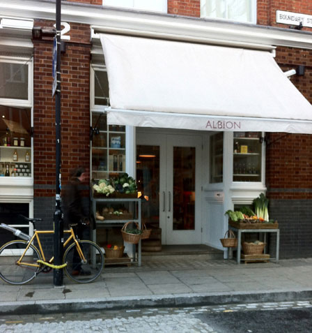 とにかく、一番のお気に入りです。昨年イーストエンドにあったショップより小さくなりましたが、細部まで行き届いたスタイリングは流石の一言。ナイフやフォークなどのカトラリーも無造作にぽんと箱にいれていたり、紅茶のソーサーが陶器のコンポートというのもなんともカッコいい。ピザをいただきたかったのですが、近くの Albion で、フィッシュ&チップスを食べてしまったために断念。写真だけ撮らせていただきました。