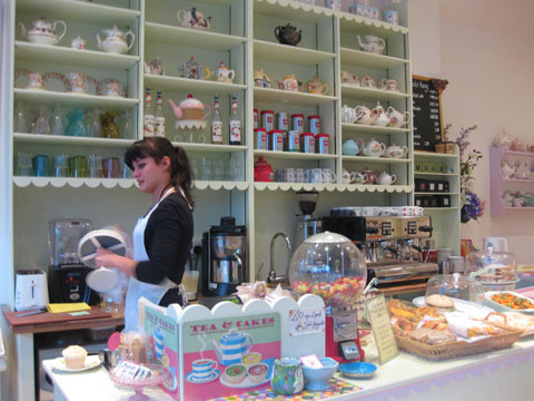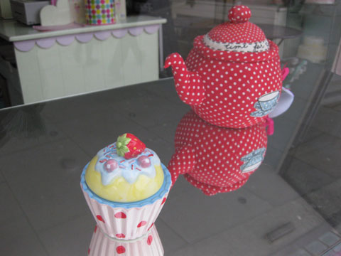 2009年にオープンしたカップケーキのお店。インテリアもおとぎの国みたいにかわいい。 多彩なデザインのティーポットやヴィンテージのティーセット、オーガニックカップケーキもキュート。