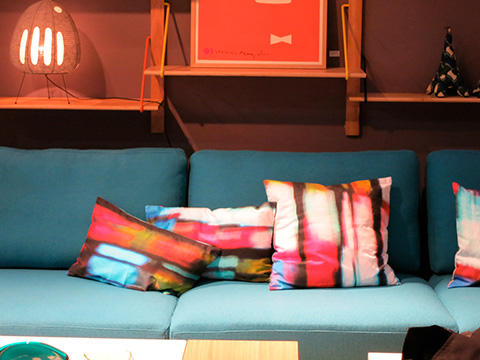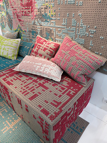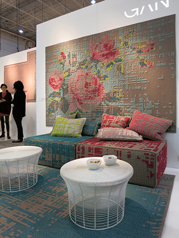 パトリシア・ウルキオラがデザインするGANのラグやクッションチェアーのシリーズは、今シーズン最も注目したデザインの一つ。カラーブロッグのバランス、クロスステッチなど今シーズンの注目トレンドが詰まったもののひとつです。