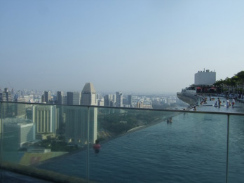 いよいよ あこがれの屋上のInfinity Pool へ・・・57階 地上200M 天空のSands Sky Park