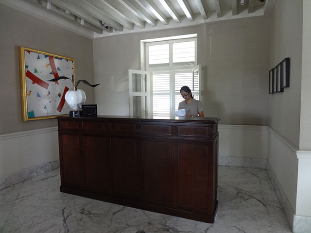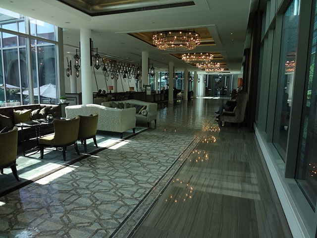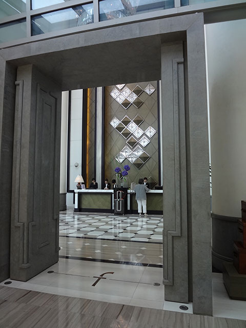 ホテルレセプションにようやく到達・・・大空間のアトリウムの中。