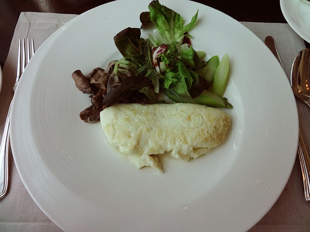 レセプション奥のレストラン、お勧めのエッグベネディクトとホワイトオムレツ・・。もちろん、Delicious♪