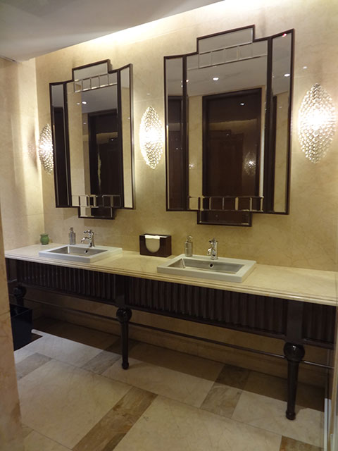 パウダールームは、クラシカルなアールデコスタイル。オリジナル照明が美しい。