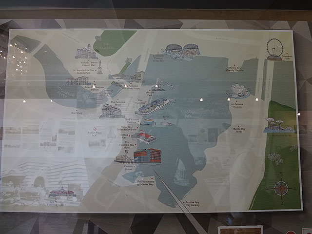 ビンテージな海図も飾られシンガポールの歴史を称える。