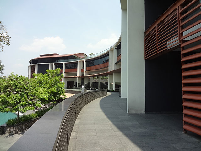 コロニアル様式のメイン棟を抜けると、突然現代建築の優雅な曲線の別棟が目の前にひろがる。