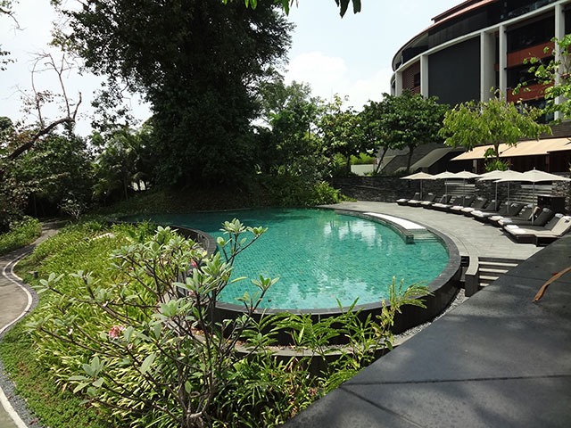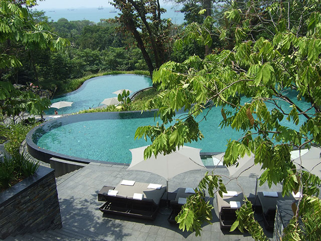 セントーサ島にある南シナ海を望む全室112室のリゾートホテルです。英国人の有名な建築家ノーマン・フォスター卿の建築とアマン・リゾーツなども手がけているインドネシア人ジャヤ・イブラヒム氏のインテリアデザインによるものです。1880年に英国軍使用のコロニアル様式の建物を復元してホテルのメイン棟としています。背後には曲線を描いたスタイリッシュな現代建築が建ち、新旧のデザインのコントラストのおもしろさに驚きます。“コロニアル様式と曲線デザインの奏でるシンフォニーの美しさ”を味わえるホテルと言えるでしょう。