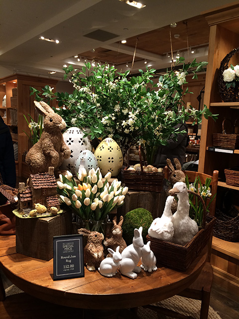 アメリカの春のイベントの1つにイースターがあります。ご存知の方も多いかもしれませんがイースターとは、イエスキリストが十字架に架けられた3日後に蘇ったことを記念するキリスト教のお祭り。復活祭とも呼ばれています。春分の日の後、最初の満月の日の次にくる日曜日がイースターと定められており、今年は4月5日です。イースターのシンボルと言えば卵とうさぎ。殻を割ってヒヨコが出てくる様子をキリストの復活に例え、また子沢山で繁栄のシンボルであるウサギがその卵を運んで来てくれる、というストーリーがあるのだとか。それに伴いイースターが近くなってくると、街のインテリアショップも可愛らしいデコレーションを始め、またスーパーマーケットでも卵やウサギ型のチョコレートやお菓子が沢山並びます。この記事を書いている現在はまだ3月ですので当日街がどんな様子になるのか分かりませんが、また素敵なイベントなどに遭遇する事があったら是非ご報告したいと思います。
