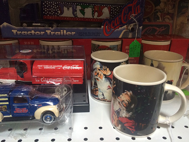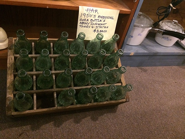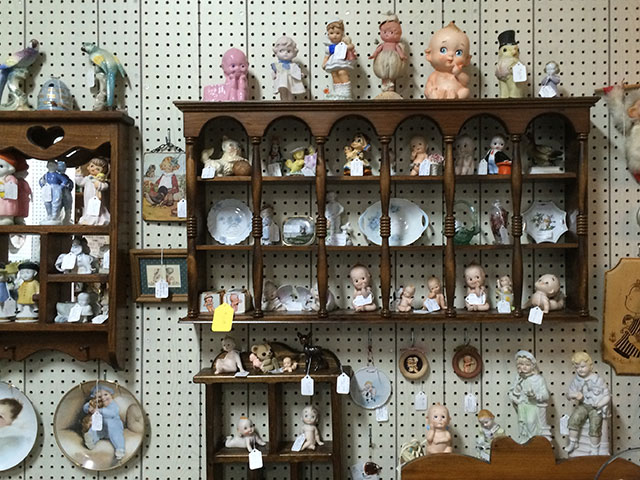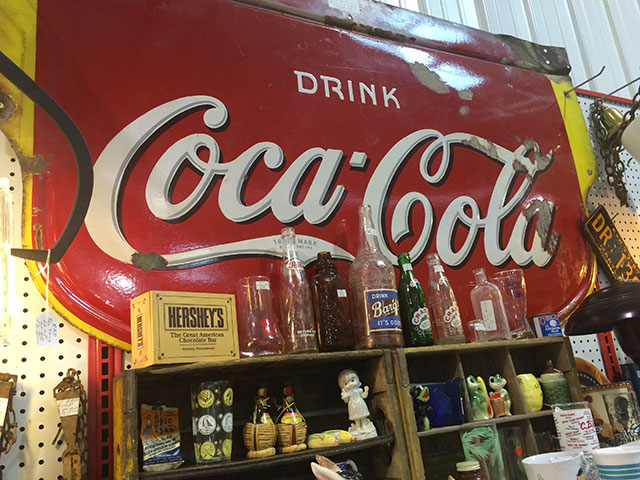 今回行った3軒は、どのお店も、個人の売り手にそれぞれ区切られた販売用ブースを貸し出している形態。フリーマーケットやギフトショーの様な感じ、と言ったら分かりやすいでしょうか?各ブースは全部売り手が違う為、置いてある商品も様々。女性に人気の高い食器類を中心に置いているブースもあれば、コカコーラなどの販促商品のアンティークを置いているブース、更にはノコギリやカナヅチなどの工具のアンティークが所狭しと置かれているブースもありました。スミソニアン博物館に置かれていても何らおかしくない価値あるものも多くある一方で、中にはどう見てもガラクタとしか思えない様な、商品としての限界を超えているような(笑)ものが置かれているブースも。ただ何が宝物になるかは人それぞれ。むしろそこから自分だけの宝物を探すというのが、マニア心をくすぐるのかもしれません。