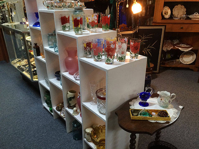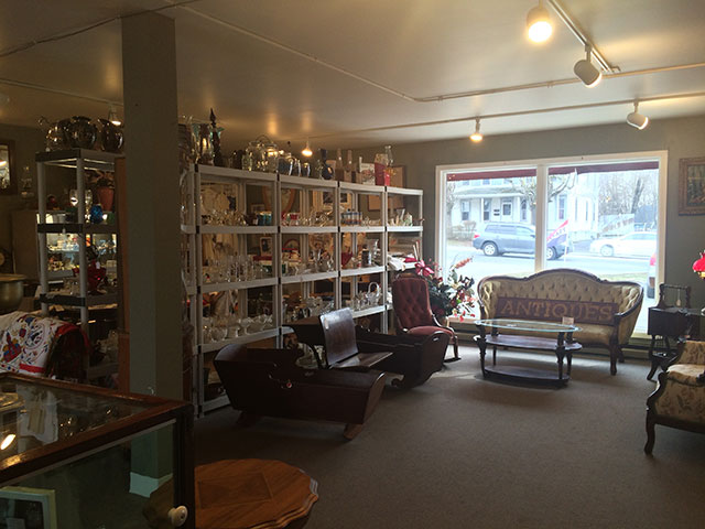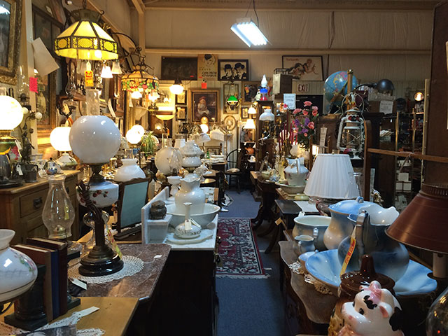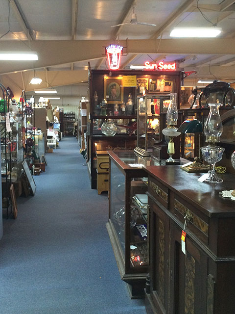 本当に何の知識も無い私は、当初、自分が住んでいるこの辺にも沢山のアンティークショップがあるのだとばかり思っていたのですが、規模が大きく、また比較的安く品が手に入る大型アンティークショップの多くは、かなり田舎の方に多く点在しているとのこと。今回行ったお店達3軒も、1時間半近く延々と両窓に牧場地やコーンフィールドを望みながら車を走らせ、やっと現れた小さな古い街の中にありました。