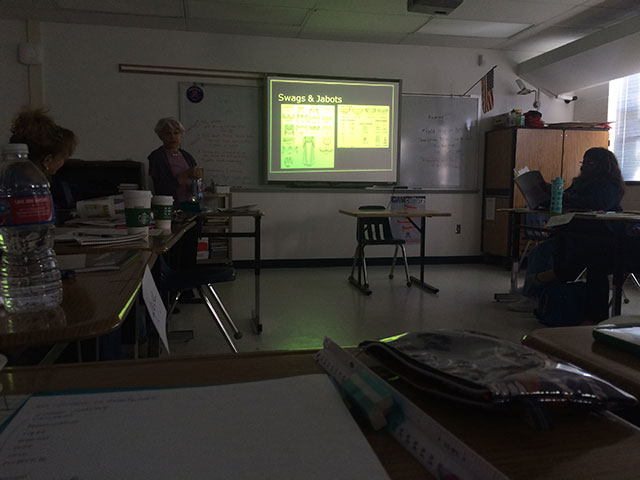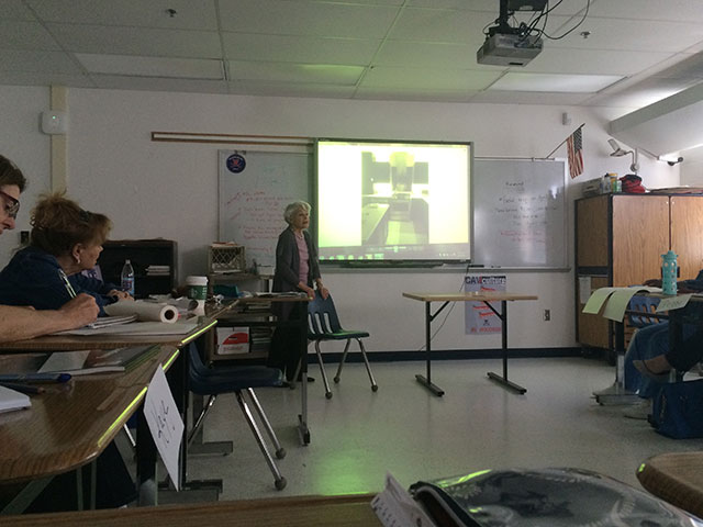 先生はASID(American Society of Interior Designers)のインテリアデザイナー、レベッカ先生。小柄な可愛らしい老婦人といった感じですが、授業ではとってもパワフルで若々しく、毎回ジェスジャーや表情をくるくる変えながら、全身でインテリアデザインの魅力を教えてくれる、とっても魅力的な女性です。若いころはご両親の勧めで看護学校に進学されたそうですが、その後やはりインテリアデザインへの夢が捨てきれず、大学に入り直してインテリアデザインのMA(修士号)、BA(学士号)を取得されたとのこと。