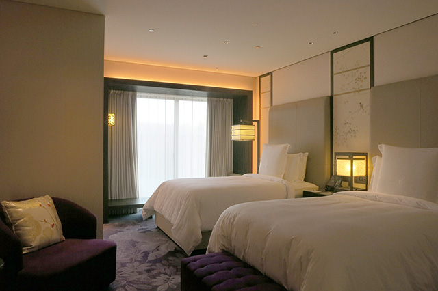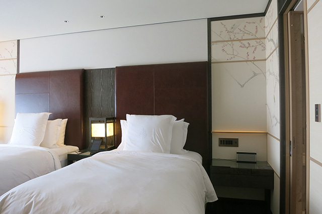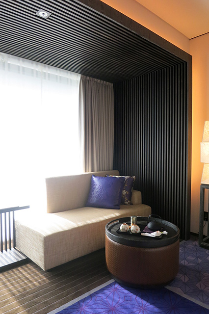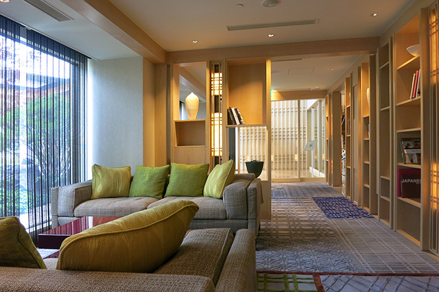 人気の旅館やホテルでは茶器や茶菓子のセレクションにも一工夫ある場合が多いのですが、このホテルでも京都という立地を意識した美味しい日本茶と茶菓子が準備されています。空間には日本の吉祥文様や和紙、西陣織などの素材をアクセントとして使用し、見る人の目に自然に日本の伝統と美が映るようプランニングされています。和のデザインの美しさを随所に取り込むことで、もてなしの心が伝わってくるホテルデザインになっています。