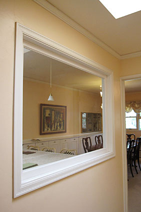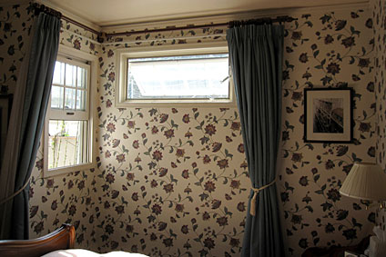 元は出窓だったところに手を加え収納に。額絵はその扉になっているという仕掛け。古いヨーロッパの建築の絵(元はカレンダー)が入っている。